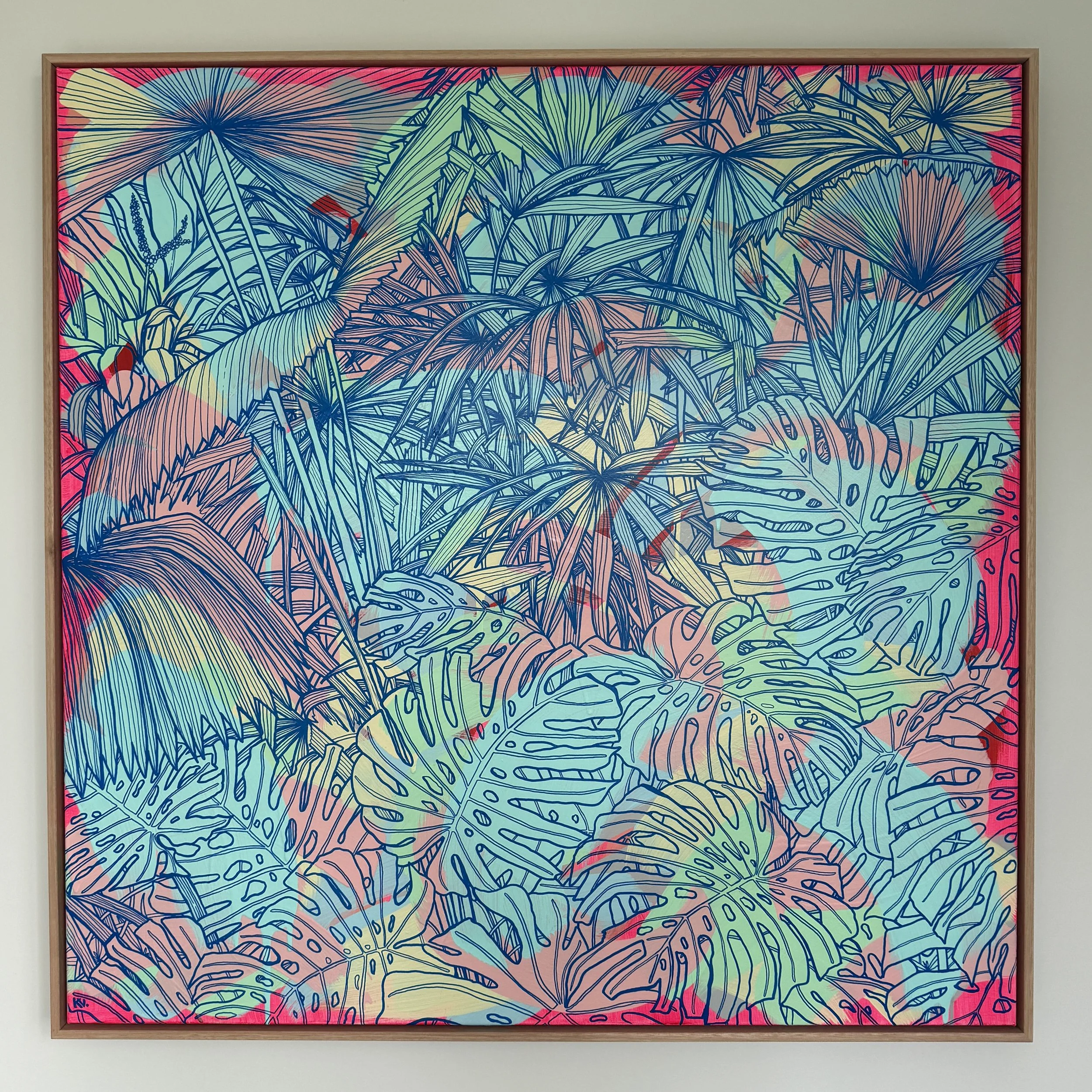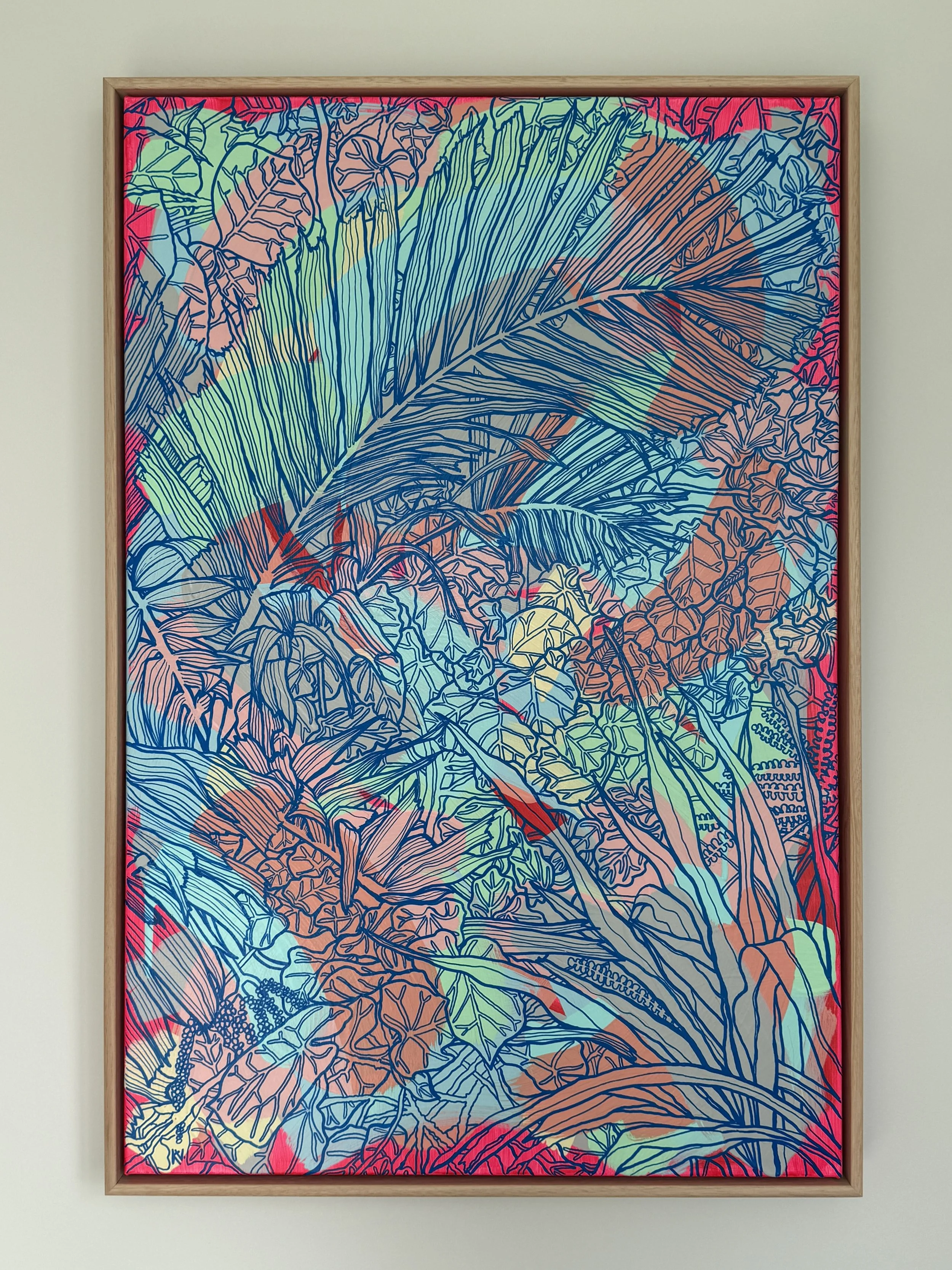 The works draw inspiration from flora found in local gardens and national park areas, and reference iconic botanical works by Japanese and American pop artists including Hokusai, Hiroshige (Edo-era Japan), Murakami (Japan, 90s Neopop) and Andy Warhol’s iconic Flowers series. Described by the artist as “inside out paintings” the Bright Paradise series can be considered as a drawn meditation on the fleeting nature of growth, life and happiness.